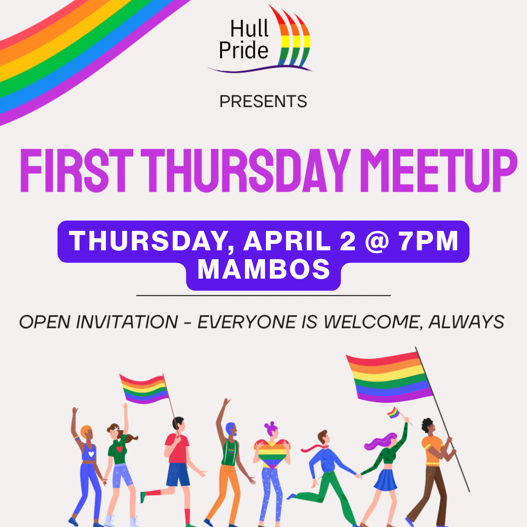 Join Hull Pride for our First Thursday meetup at Mambo's! Share a laugh, spread some joy, build community.